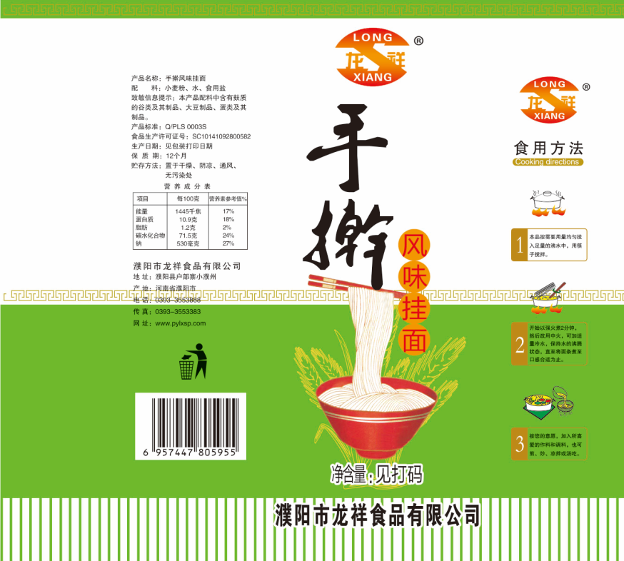 濮陽市龍祥食品有限公司位于河南省濮陽縣戶部寨鎮(zhèn)小濮州,始建于1994年,前期投資200萬元,經(jīng)過幾年的努力,大力開發(fā)市場,由于市場的需求量急劇上升,出現(xiàn)供不應(yīng)求,于2004年擴(kuò)建,建成一座新型的現(xiàn)代化面粉加工企業(yè),并擁有全國先進(jìn)全自動生產(chǎn)設(shè)備一套,產(chǎn)量由以前的100噸/天,提高到現(xiàn)在400噸/天。 2012年再次擴(kuò)大規(guī)模申請為濮陽市龍祥食品有限公司,注冊資金500萬元。2012年又投資800萬元新建掛面生產(chǎn)線一條,日產(chǎn)掛面50噸。龍祥食品有限公司現(xiàn)有職工120余人,總工程師1人,專業(yè)技術(shù)人員10人,經(jīng)濟(jì)師1人,會計師1人,銷售人員2人,優(yōu)秀專業(yè)人員20余人?! ↓埾楣咀詣?chuàng)建以來,社會效益十分可觀。公司一直以“今天的質(zhì)量,明天的市場”為信念,“一切為了客戶需求,竭誠追求完美品質(zhì)”為企業(yè)宗旨,走專業(yè)化經(jīng)營和職業(yè)化管理的路子。